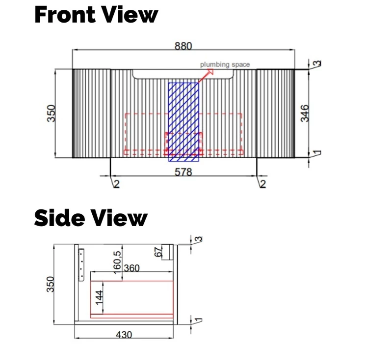 Size 880mm wide x 430mm deep x 350mm high