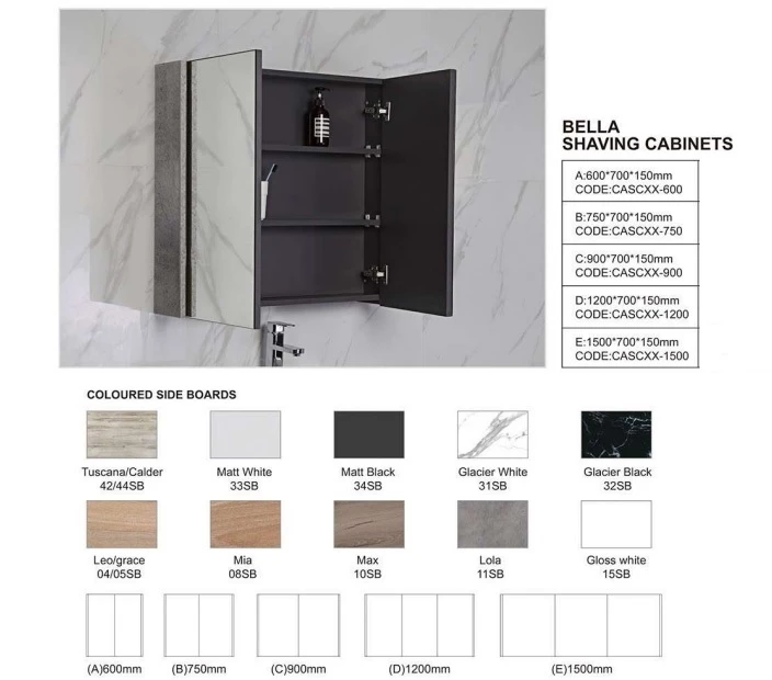 This wall-mounted Mirrored Shaving Cabinet will make a statement in a modern bathroom. Ten different side board colours are available to match your cabinet finish. Come with adjustable shelve design, will offer your bathroom plenty of storage space for toiletries, cleaning products and other bathroom needs.