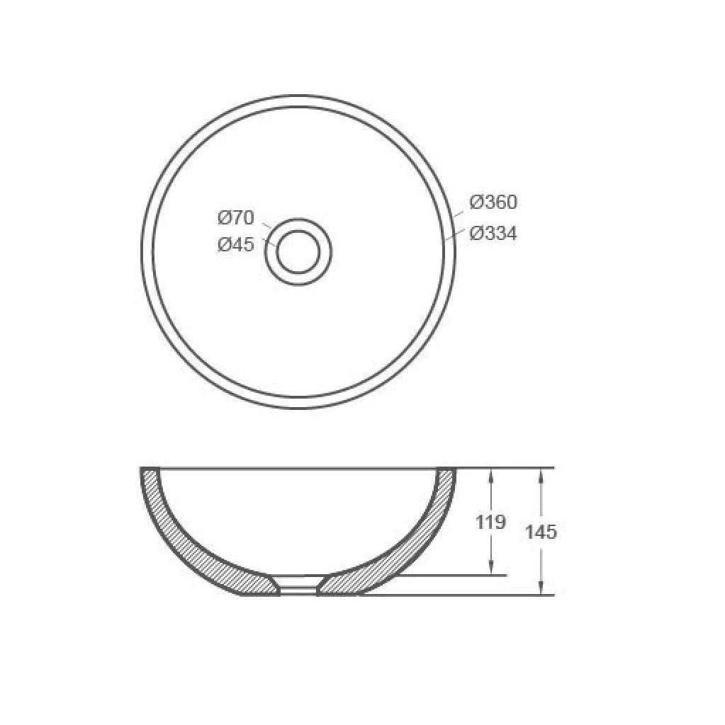 ~ 360 x 360 x 145mm