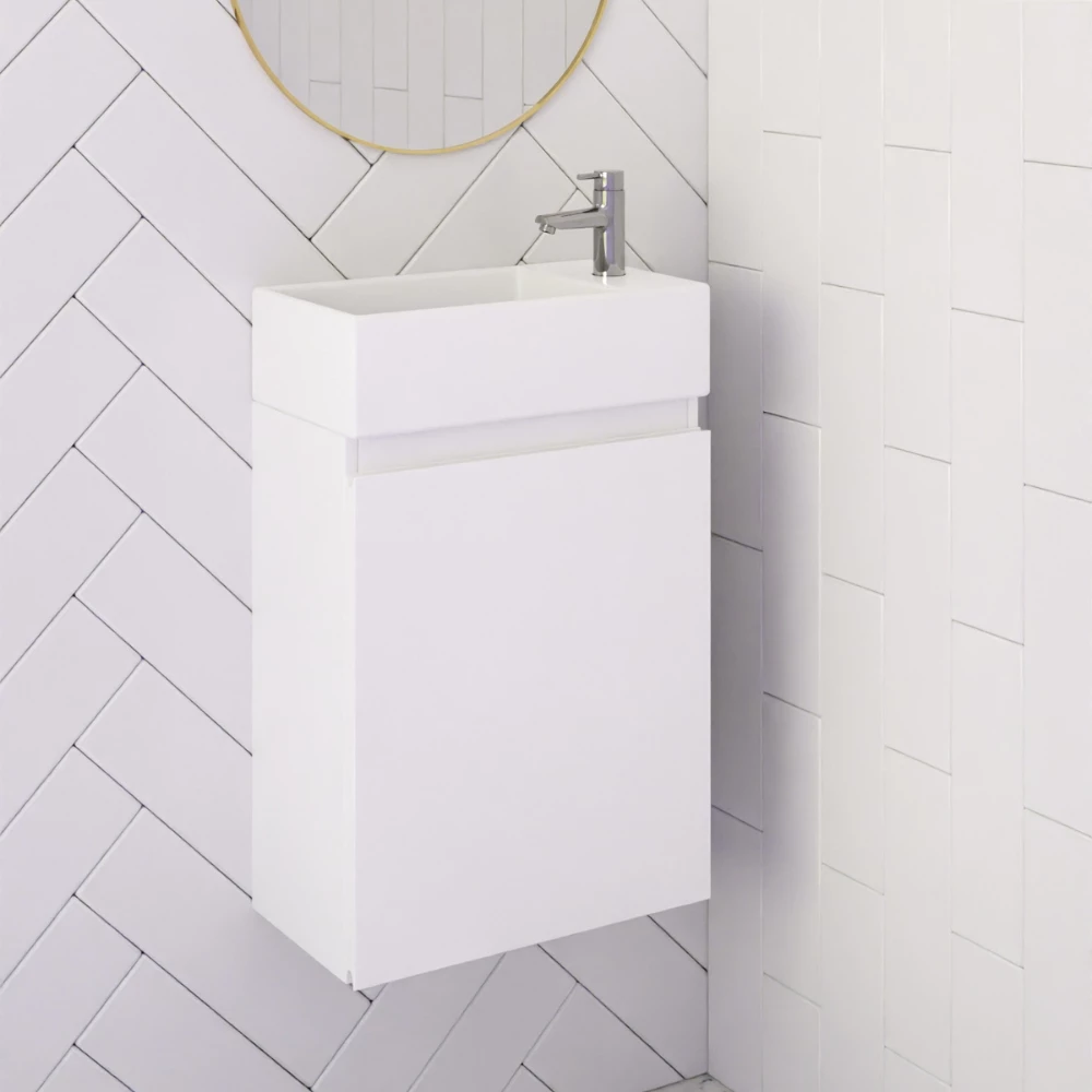 - Top manufactured from Polymarble , reversible, Single Tap Hole