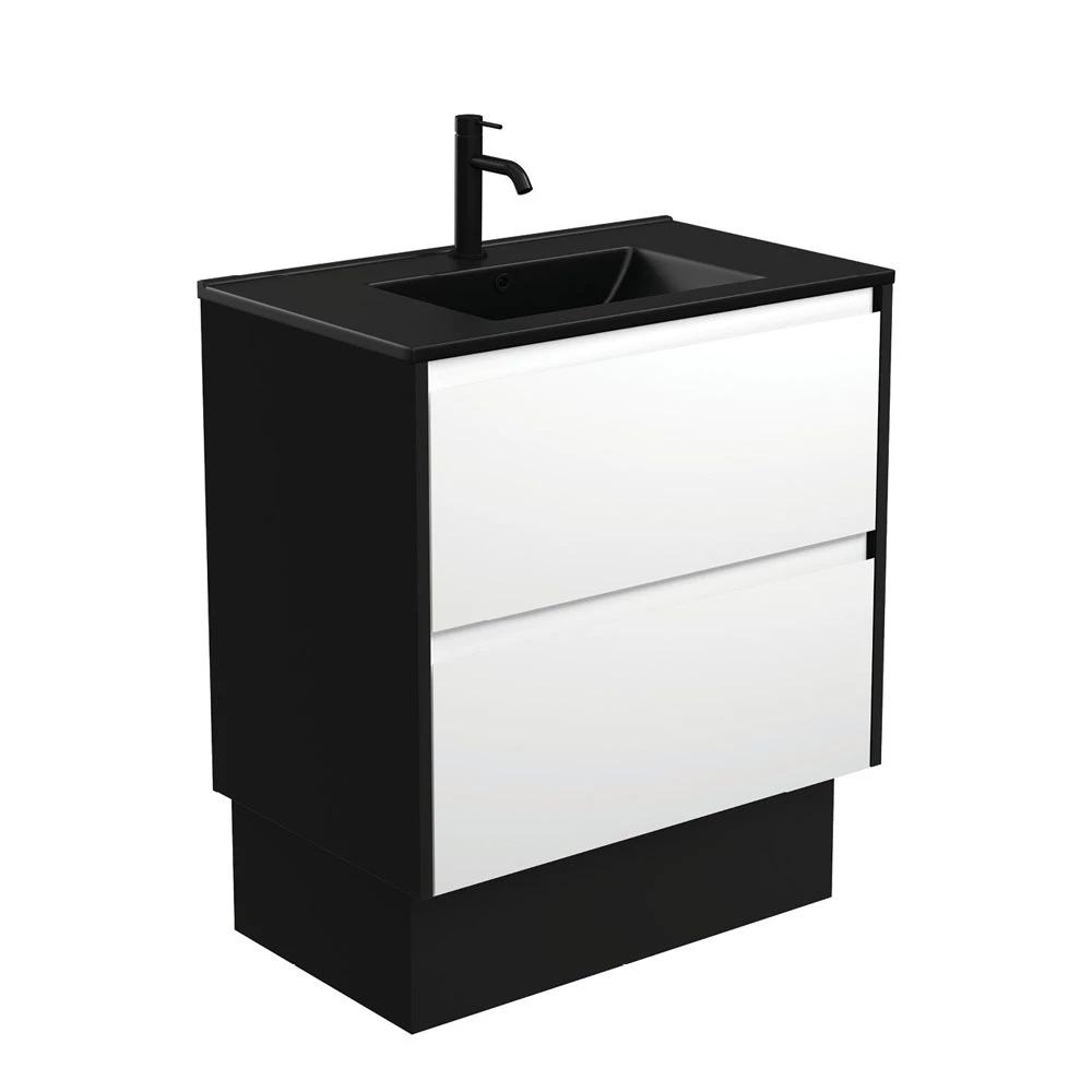 AMATO Satin White Cabinet with Satin Black Side Panels:
