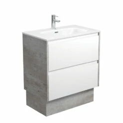 AMATO Satin White Cabinet with Industrial Side Panels: