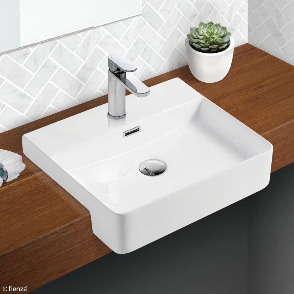 Installation Note: Due to the nature of ceramic as a material, small variations in size and shape do occur. Ensure that the measurements of the purchased basin are checked physically, BEFORE cutting any counter-top. Specification drawings are a GUIDE ONLY. Fienza will not be held liable for any errors made by external parties when cutting counter-tops.