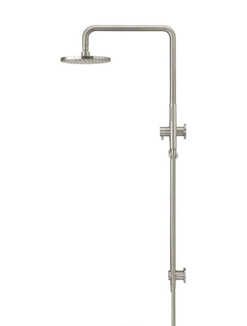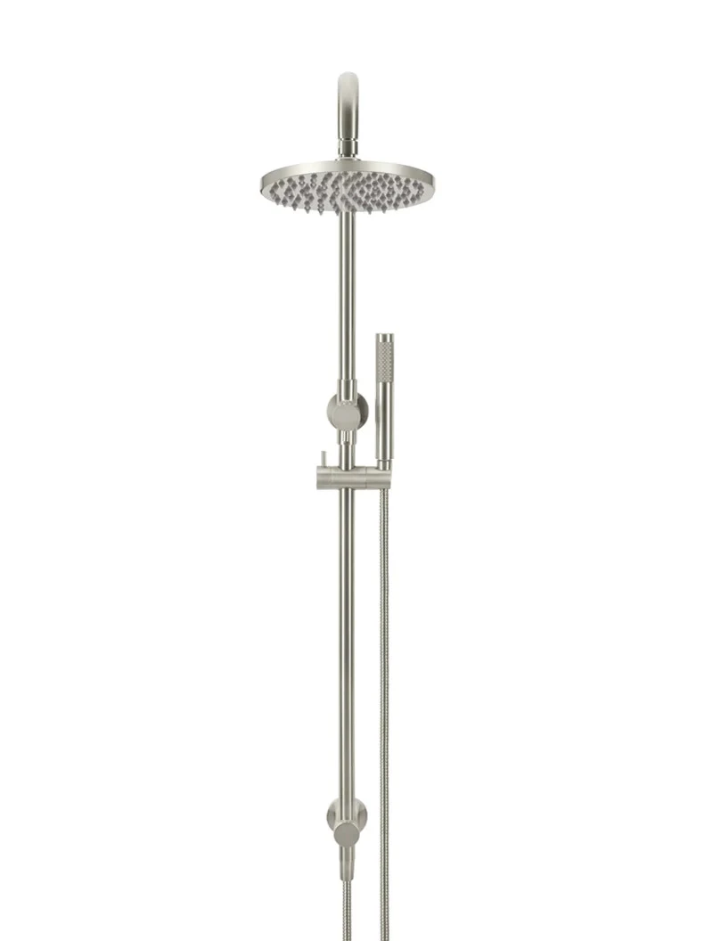 With a simple twist of the in-built diverter; you can switch from the overhead shower to engage the precision shower wand for close-up washing with this stunning Brushed Nickel Round Shower Rail.