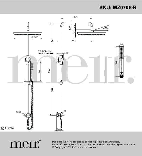 This Black Shower Rail has an innovative world-first design, exclusive to Meir; comprising of a universal water inlet; enabling this shower to be installed either as a top or bottom water connection, suiting both existing and new homes.