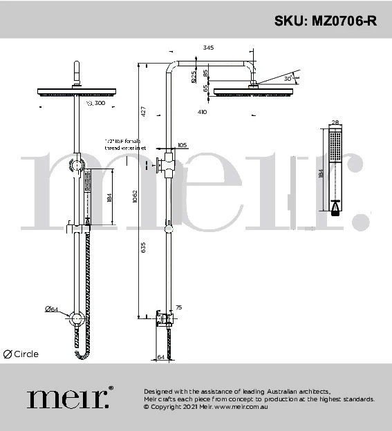 This Shadow Shower Rail has an innovative world-first design, exclusive to Meir; comprising of a universal water inlet; enabling this shower to be installed either as a top or bottom water connection, suiting both existing and new homes.