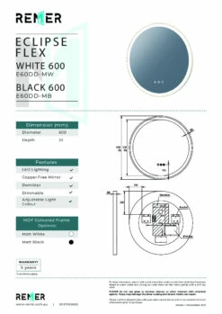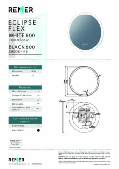 Remer LED Bathroom Mirror With Demister Gatsby D Brushed Nickel Frame 900mm X 4500mm G4590D-BN