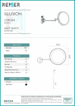 Remer Illusion Round Magnifying Bathroom Shaving Mirror With LED Lighting Matte Black ID-X5-MB