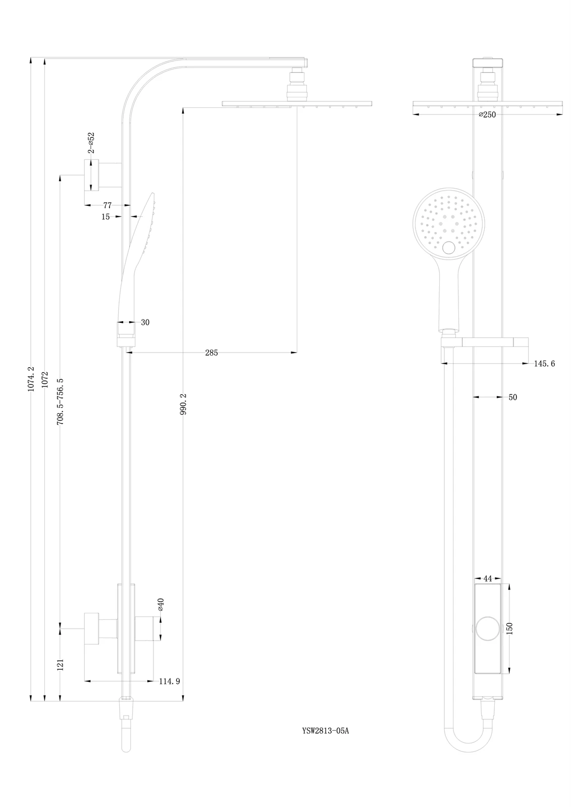3 Function Handset And 250Mm Overhead Drencher