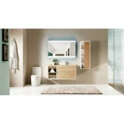 led bathroom mirrors with demister. The round edges on the top defy the typical shaping of a mirror, and the backlit aura of light that it emits gives the mirror a sense of exclusivity. With the practical luxury of an in-built demister that defogs the mirror after a hot shower, there is something truly spectacular about this innovative design.