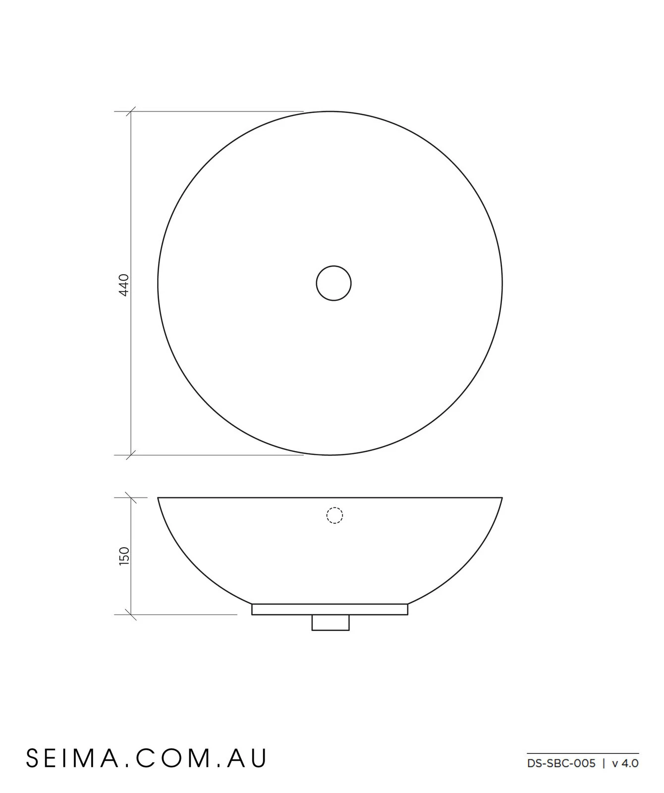 Dimensions: 440 mm diameter x 150H mm