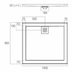 Oceano Shower Base 1000 X 900mm Rear Outlet Solid Cast Construction Stonelite ECO EC1090R