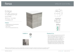 Fienza Bathroom Vanity 600 Cabinet Wall Hung Cupboard Two Doors Edge Industrial Grey 60X