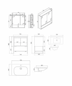 BNK Shaving Mirror Cabinet And Bathroom Vanity Cabinet 750mm Versilla MC-62075(MP) & CB-43075(MP)